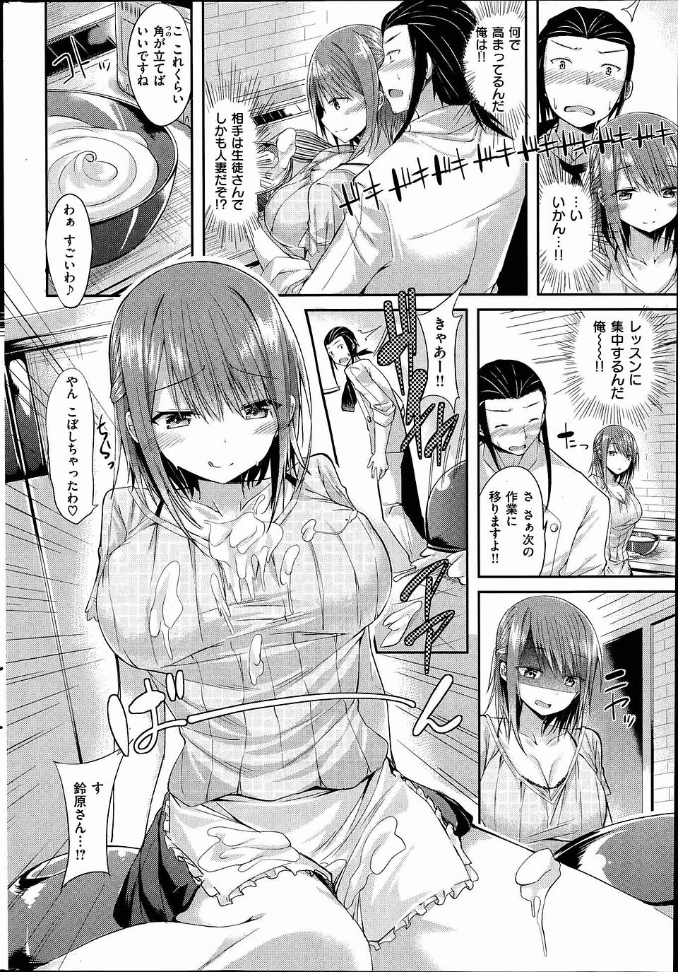 【エロ漫画】料理下手な巨乳人妻にたのまれてケーキ作りの個人レッスンを始めたが淫乱人妻の狙いは先生のちんぽwww…